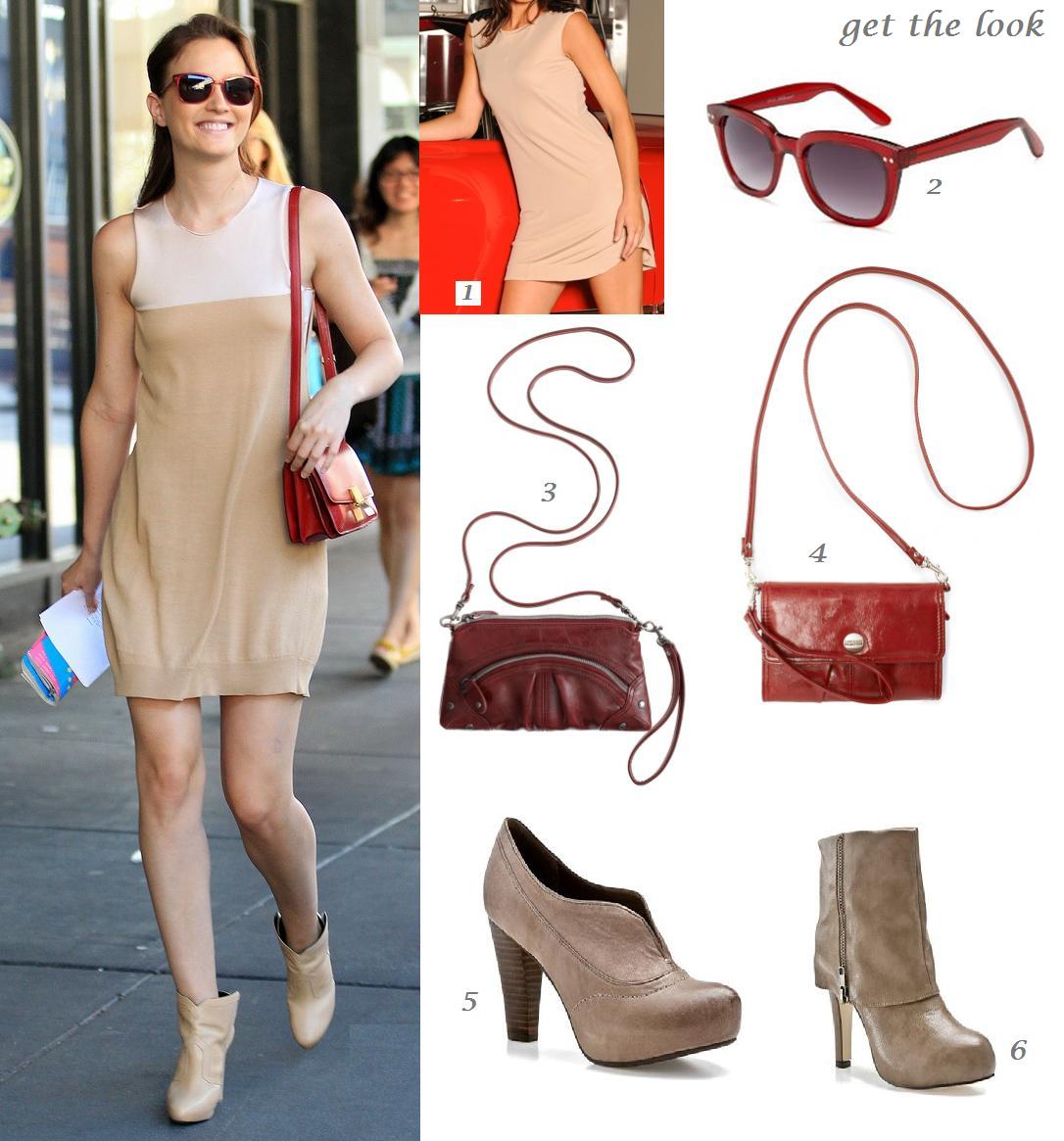 Leighton Meester was spotted wearing two tone nude Céline shirt dress with nude ankle boots while arriving at the set of Gossip Girl. To set off her neutral outfit, she added another colour in the mix by wearing red trim Balenciaga sunglasses and a red Celine box bag. Casual, trendy and chic, she looks perfect.